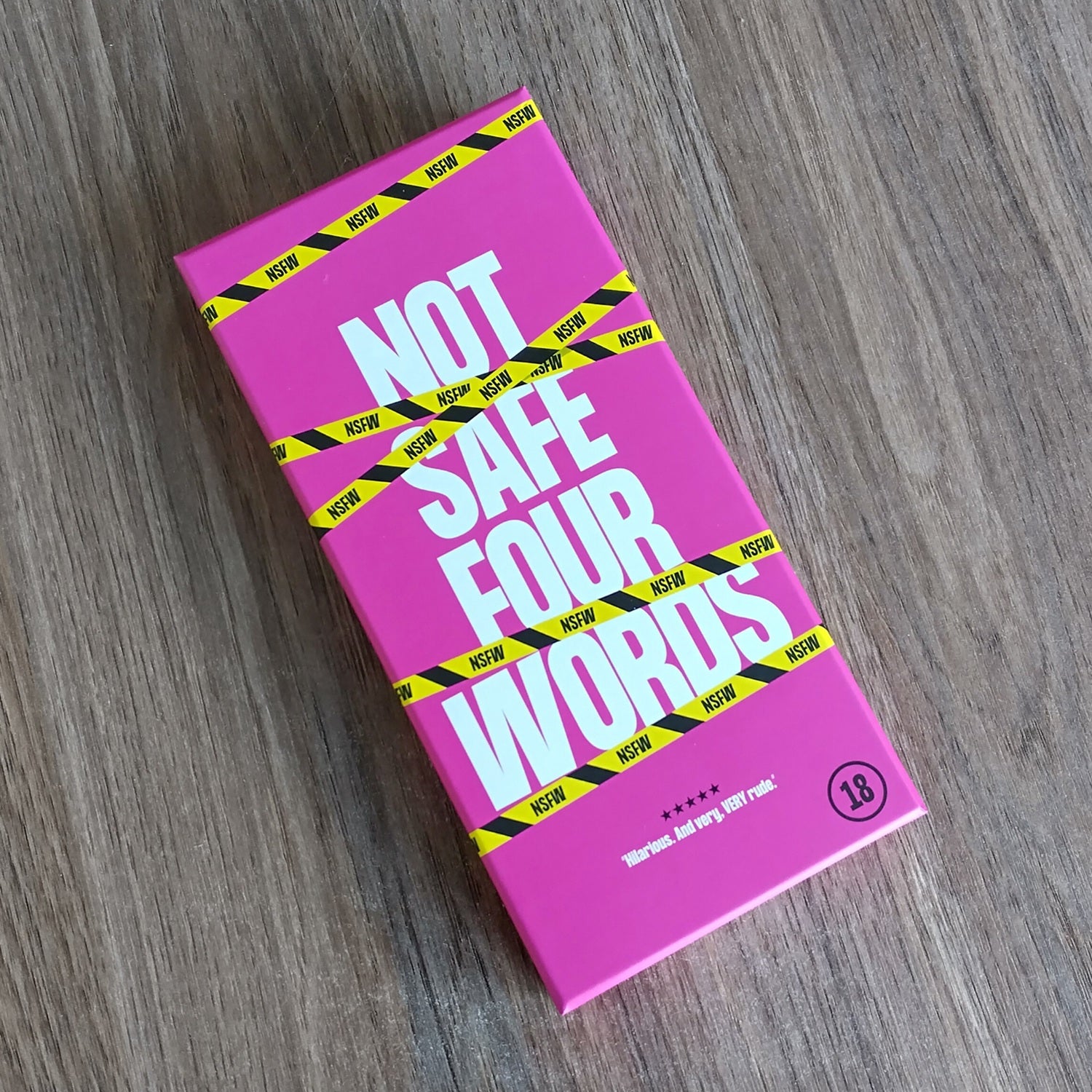 Not Safe Four Words is my love letter to gloriously inappropriate humour and the beautiful chaos that ensues when you give people permission—safe behind the net curtains of their own home—to be rude, naughty and, if you feel brave enough, absolutely filthy. That's right. It's an over 18s playground-humour version of Cards Against Humanity.